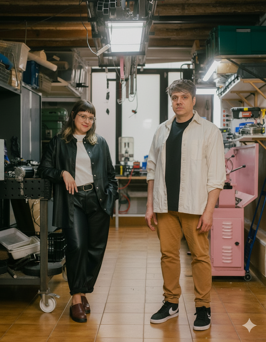Hamill Industries are Barcelona-based artists Pablo Barquin and Anna Diaz. Through their ten-year career, the duo has crafted films, installations and stage productions. Their artistic practice places experiential storytelling at the forefront of the creative process, allowing the choice of format to emerge organically. This transmedia flexibility is facilitated by the extensive research they carry in their workshop, where they develop state-of-the-art tools to support their vision.